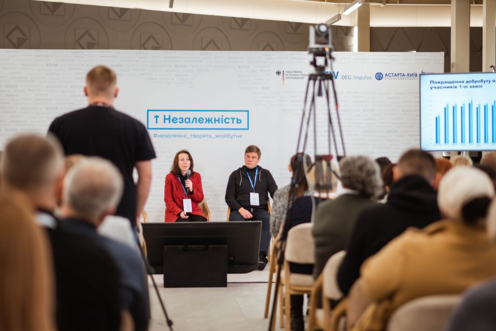 На панельних дискусіях присутні обговорили досвід роботи малих підприємців з грантовими програмами та можливі ризики, партнерство держави, місцевої влади і бізнесу. Також переможці проєкту «Курс на Незалежність» презентували свою продукцію: сири, м’ясні вироби, натуральні соки, хлібобулочні вироби, мед, зелень тощо.