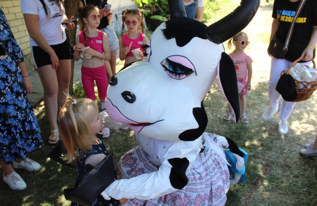 Всі бажаючі мали можливість сфографуватися із Котелевською корівкою та отримати в подарунок від її помічників смачне морозиво, виготовлене із натурального молока.