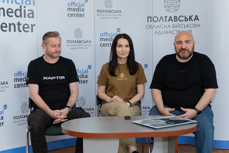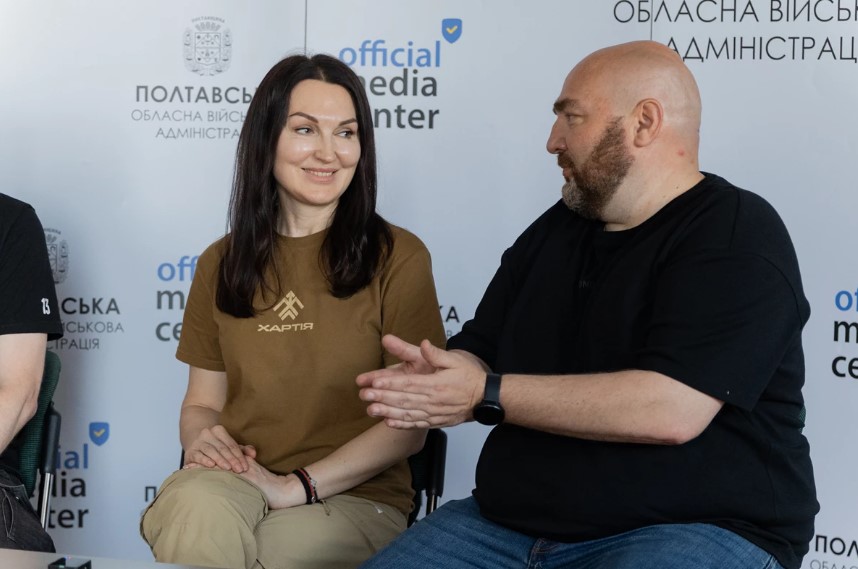 Полтавську область відвідали представники 13-ї бригади оперативного призначення НГУ «Хартія». В офіційному медіацентрі Полтавщини відбувся брифінг заступника начальника Полтавської ОВА Антона Чубенка, військовослужбовців «Хартії» Сергія Жадана та Аліни Коваль.