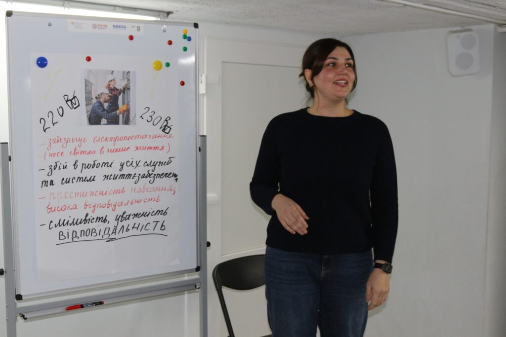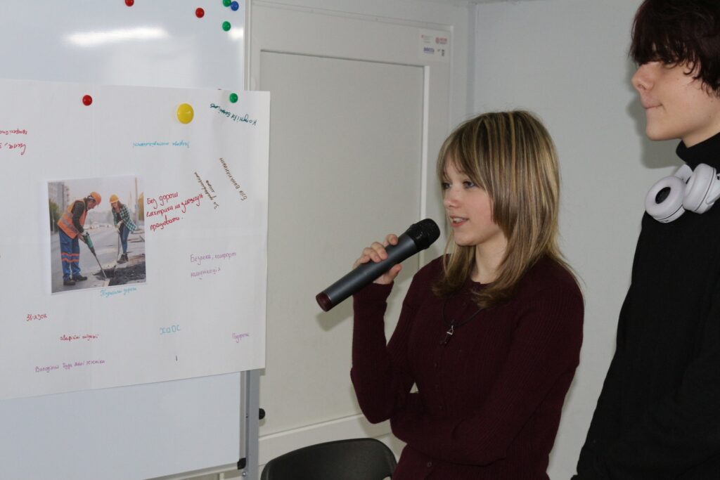 Найемоційнішим та найдинамічнішим етапом зустрічі став міні-воркшоп «Це ми і це наша громада: беремо участь – беремо відповідальність». Учасники працювали в групах, відповідаючи на питання: які професії потрібні громаді вже сьогодні та які навички мають бути у представників цих професій, визначали професію за поданою візуалізацією, створювали її короткий «портрет» та презентували свої висновки.
