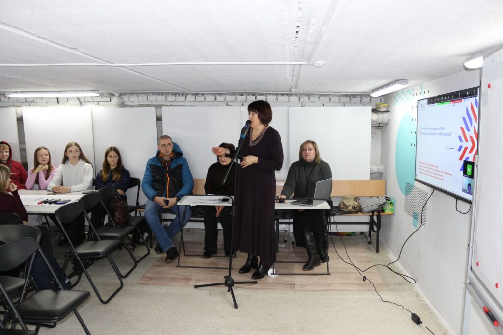 Модератором зустрічі виступила кар’єрний координатор Любов Яшна, яка ознайомила учнів, батьків учнів, педагогів закладів освіти громади з метою заходу та налаштувала учасників на активну роботу, оскільки профорієнтація є важливою саме як спільнодія: школи, родини та всієї громади.