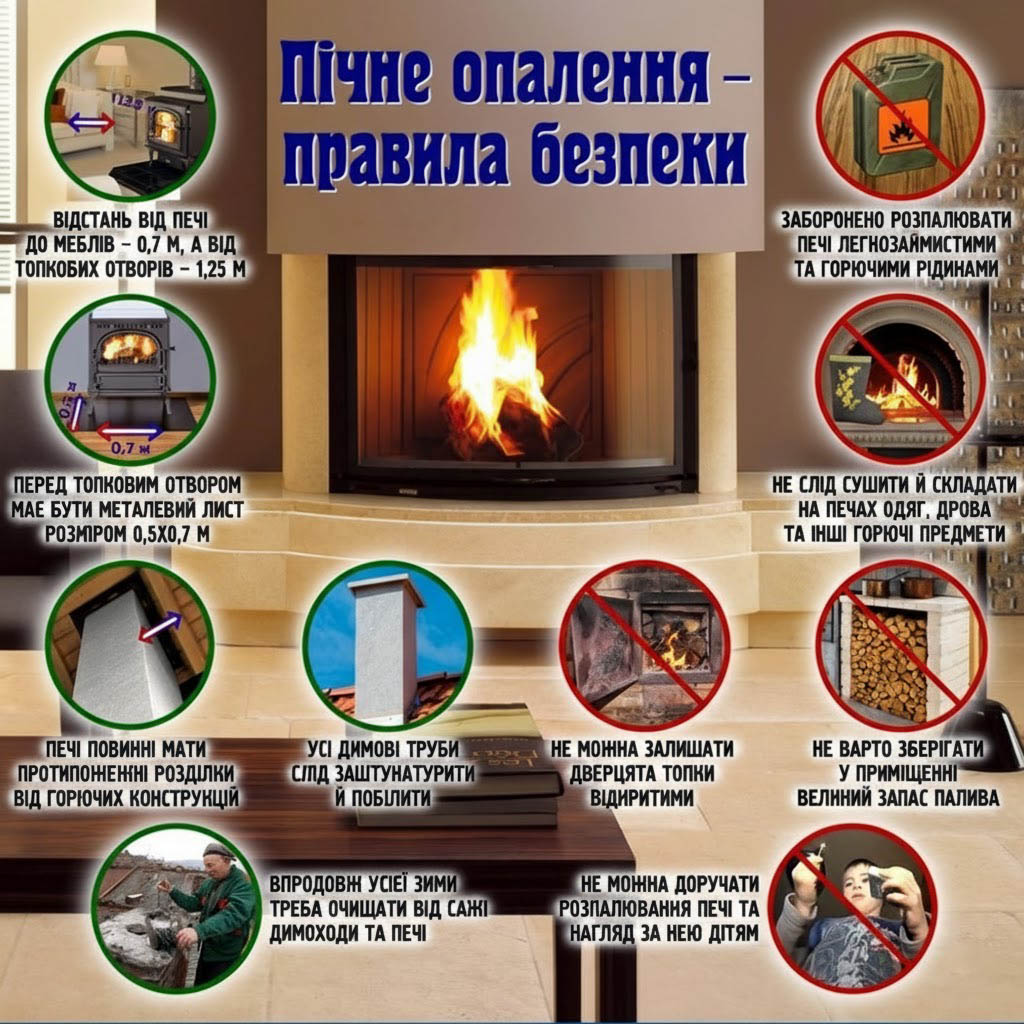 ◾ сушити й складати на печах одяг, дрова, інші горючі предмети та матеріали;