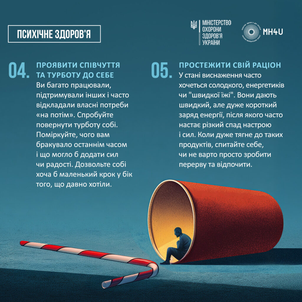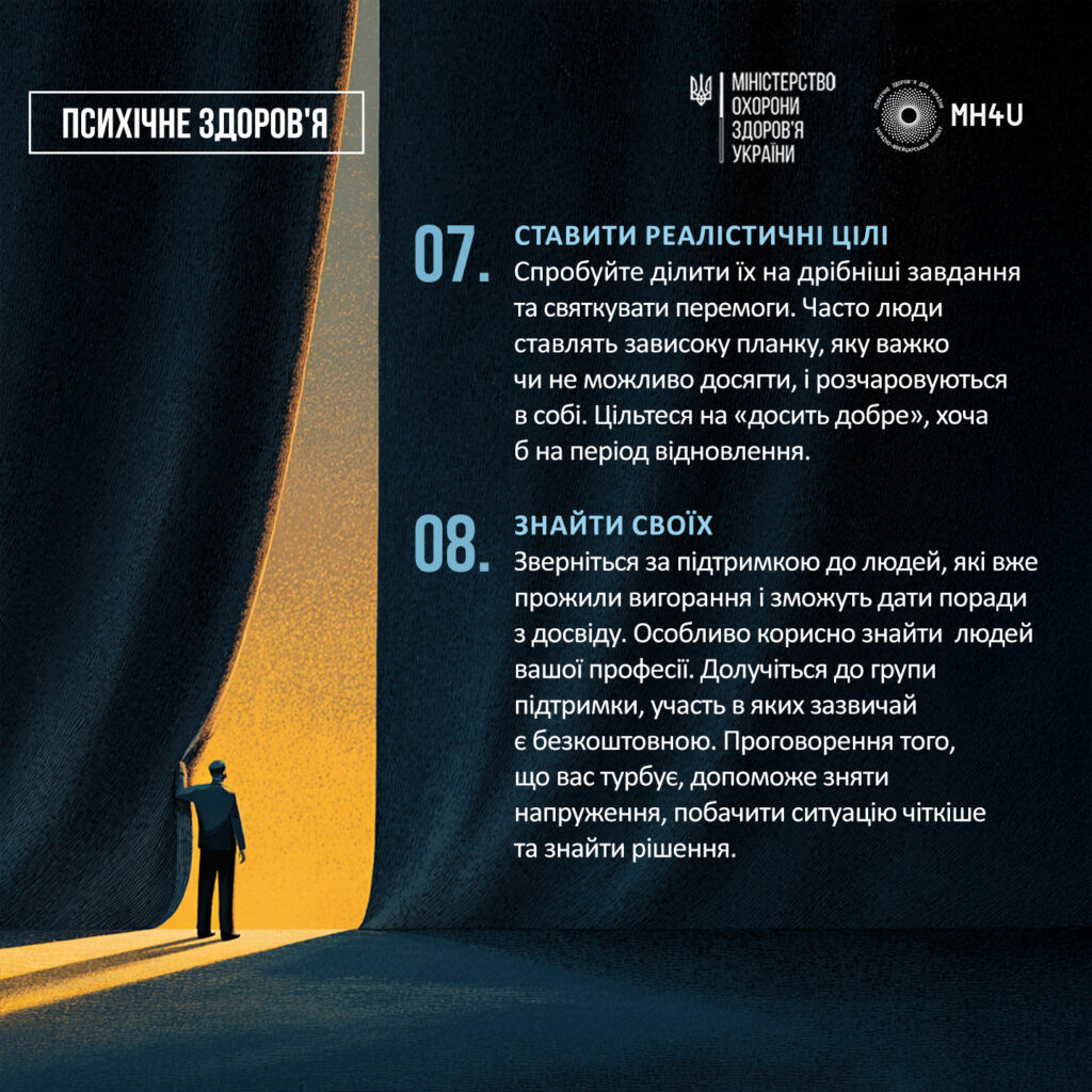 Важливо розуміти, що не існує однієї чарівної таблетки чи універсального рішення, яке миттєво поверне тобі сили. Однак, невеликі, послідовні кроки справді допомагають. Спільно з проєктом «Психічне здоров’я для України» ми зібрали для тебе практичні рекомендації від фахівців. Ці поради допоможуть зрозуміти, з чого варто почати відновлення і як ці прості дії можуть вплинути на твій стан.