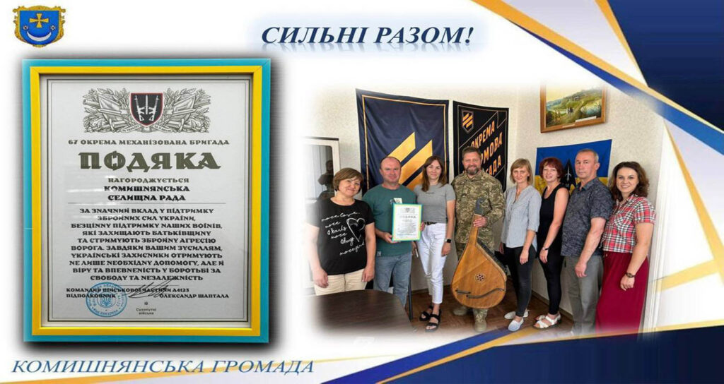 Комишнянська громада отримала важливу і надзвичайно цінну відзнаку — Подяку від захисників, які зараз мужньо боронять нашу рідну землю.
