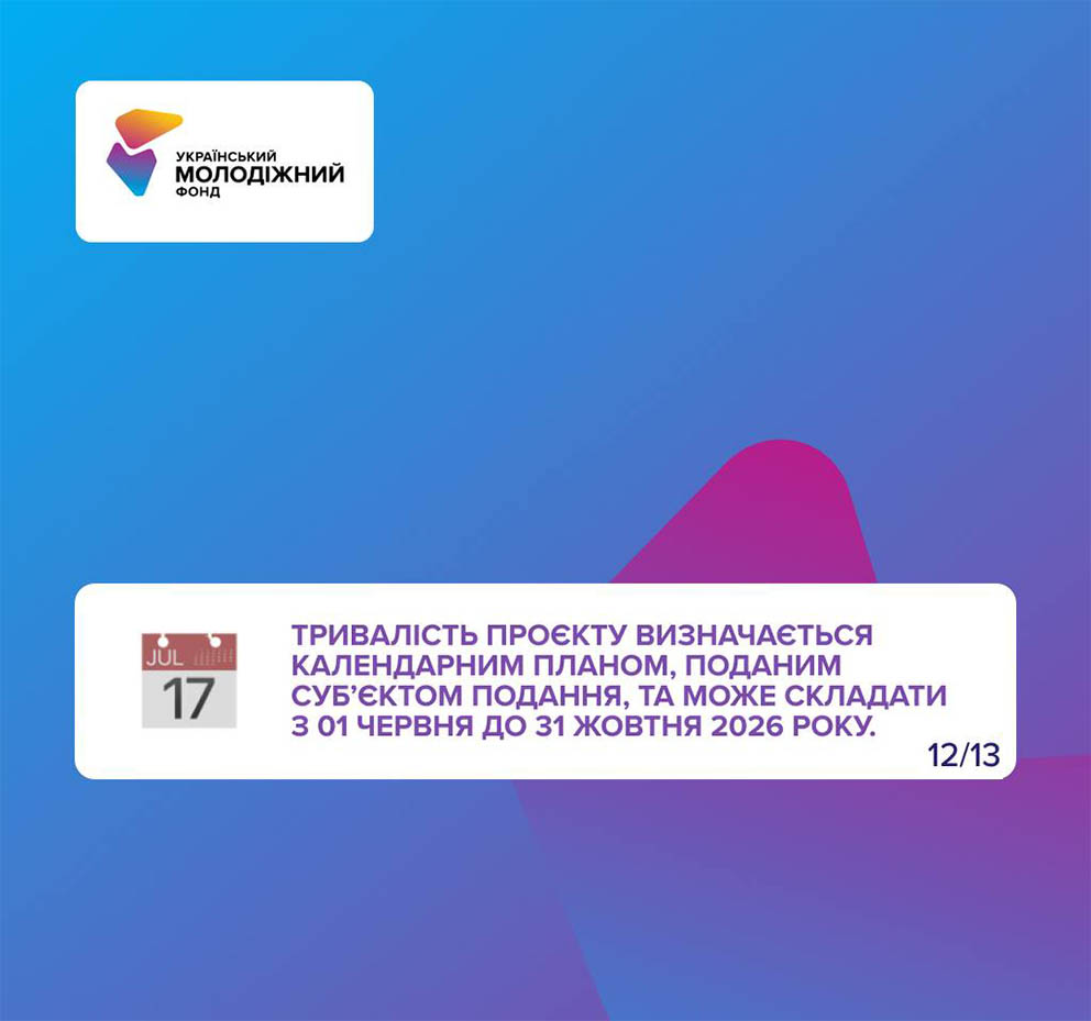 📆 Терміни: подати заявку можна до 20 березня. Реалізація проєктів триватиме з 1 червня до 31 жовтня 2026 року.